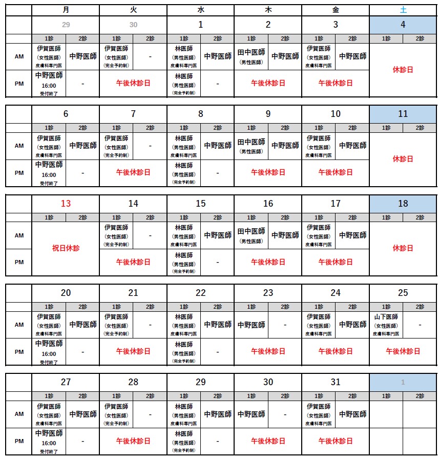10月の土曜日の診療日は10/25(土)の午前診になります。